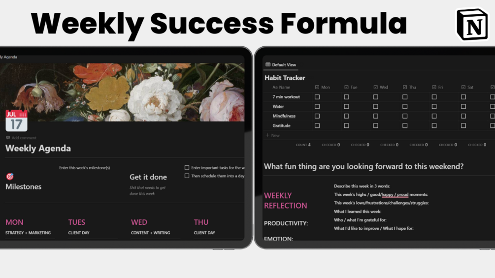 Don't wait any longer to unlock your full potential and achieve weekly success! Get the Weekly Success Formula With Notion now and embark on your journey toward a more productive and fulfilling life.